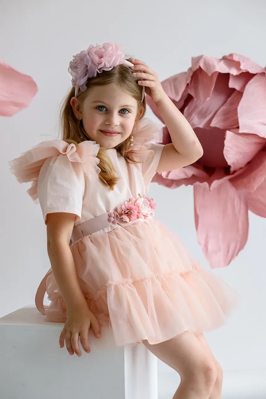 Detská čelenka z kolekcie Jamiks. Model s ozdobnými prvkami vytvorený z textilu.